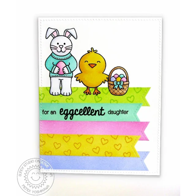 Today I'm super excited to be sharing one of my favorite sets from the release called Sending My Love! For my first card I created my background using the heart border die from the Sunny Borders stamp set (being featured tomorrow). I then stamped my little scene with the images from the set.