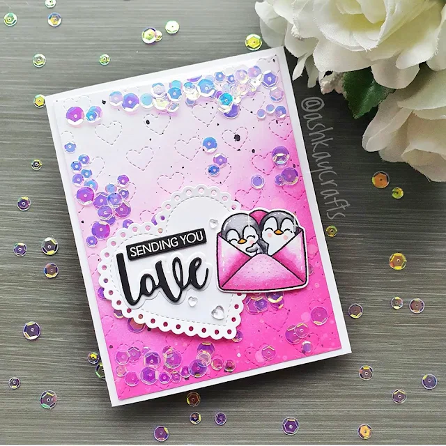 Hi Friends! Catherine here, sharing a Summer card created with the Tropical Trees Backdrop and the all so adorable Passionate Penguins Stamps.