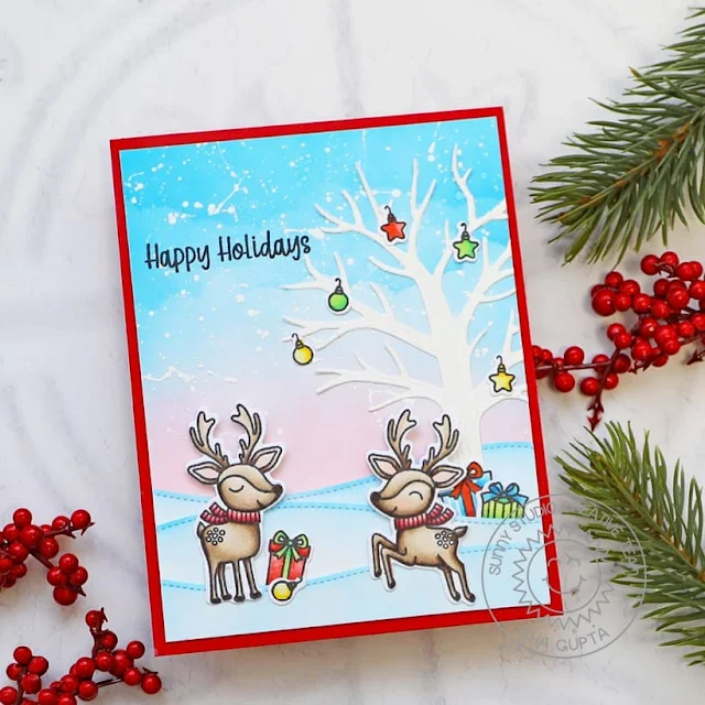 Hello everyone! Isha today with a cute holiday card featuring the Reindeer Games stamps and dies.