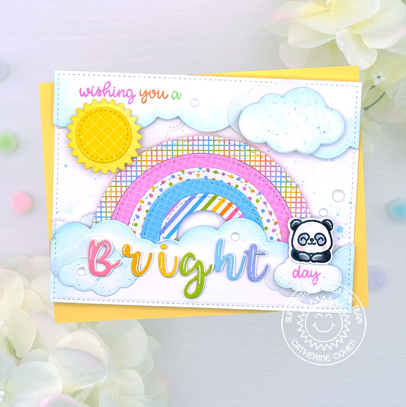 Sunny Studio Stamps: Hayley Alphabet Die Focused Rainbow Card by Catherine Cohen (featuring Panda Party, Stitched Circle Dies)