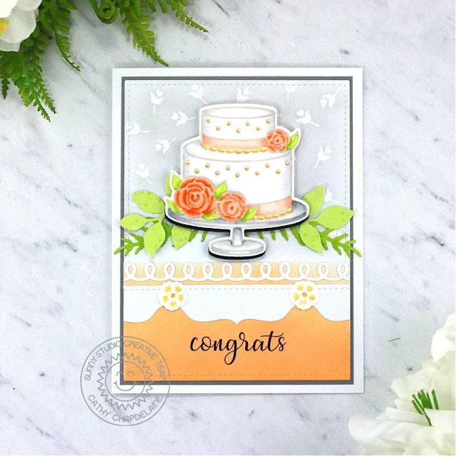 Hey friends! Cathy here today sharing a card featuring this gorgeous cake from the Special Day Stamps! I love a peachy orange/lime green color scheme as the weather gets warmer and I think this would make for a perfect summer wedding congrats card.