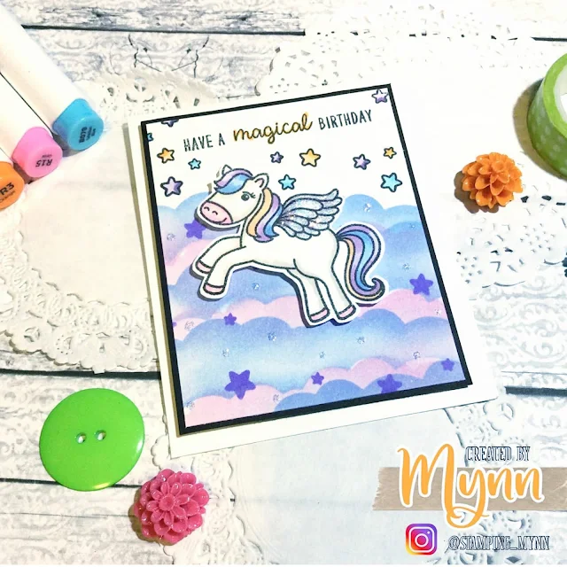 To make this 5" X 7" card, I I started by stamping and die cutting the beach buddies using the coordinating stamps and dies. I colored them using lots of pink! For the accessories, I used the hottest and brightest pinks including Copic colors, RV02, RV04, RV06, RV09, and RV17. I cut the pool using the Swimming Pool dies and three palm trees from the set, Tropical Trees Backdrop Dies.