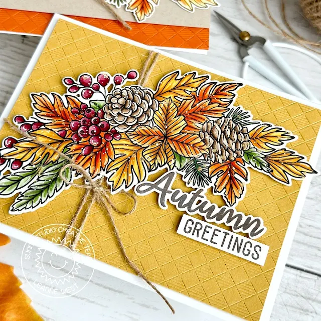 Hello everyone! Leanne here and I have a two for one post today showcasing the beautiful Autumn Garland stamp set. This set includes a large swag like image that can stand alone making it very easy to complete a card.