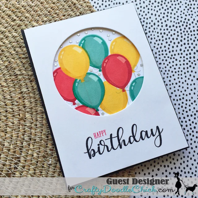 I started with the Comic Strip Everyday Die and die-cut the pieces from white cardstock and patterned paper. After I had adhered the background, I stamped the images, colored them with Copic markers, die-cut the elements with the matching dies and adhered everything to the card with foam tape.