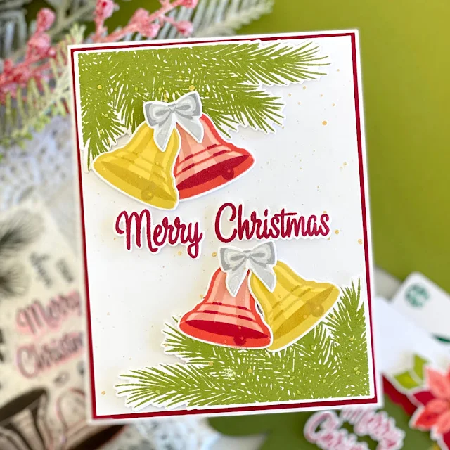 For my first card today, I am showcasing the beautiful mini layering Pretty Poinsettia Stamps and coordinating Pretty Poinsettia Dies. This set is super easy to layer and creates gorgeous cards for such an affordable price point, given its 3x4-inch size!- Altenew Frosty Pink